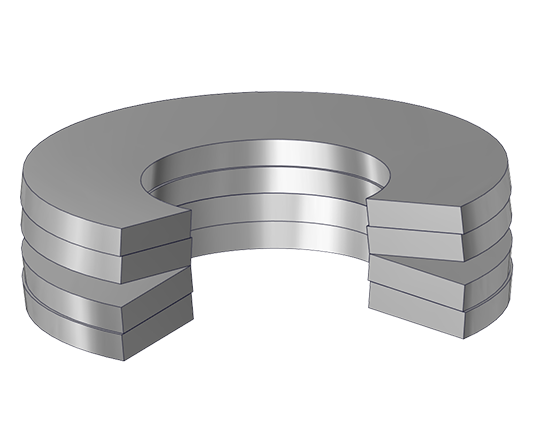 Borrelly Tellerfedern können allein verwendet und beliebig durch den Innen- oder Außendurchmesser zentriert werden.